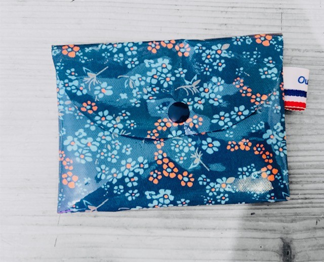 Cette pochette en coton enduit est impérméable, pratique et facile à nettoyer.