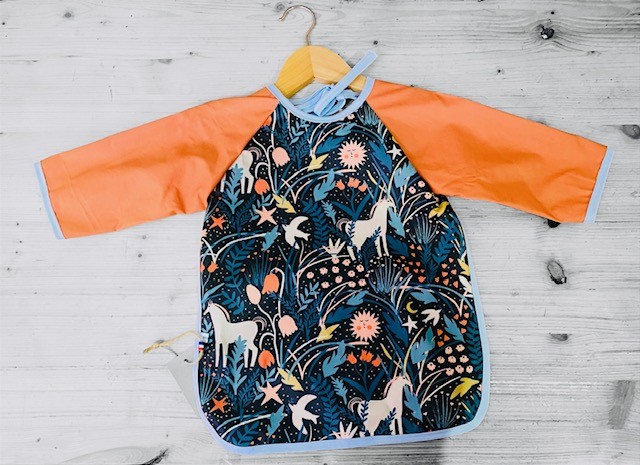 Confortable, légère et facile à enfiler, elle rend les activités créatives et les repas beaucoup plus simples ... et beaucoup moin salissants !