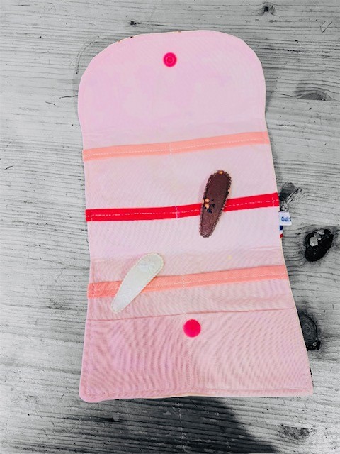 Pratique et adorable, cette pochette permet de ranger soigneusement pinces, élastiques et accessoires de coiffure.