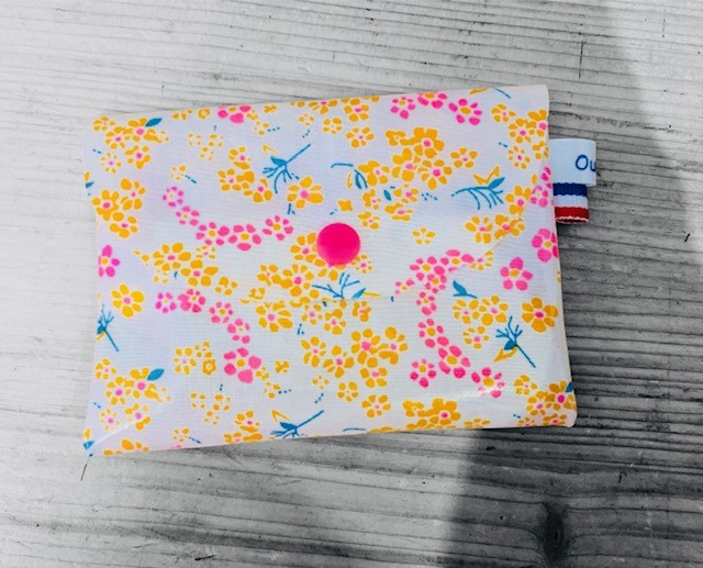 Cette pochette en coton enduit est impérméable, pratique et facile à nettoyer.
