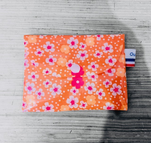 Cette pochette en coton enduit est impérméable, pratique et facile à nettoyer.